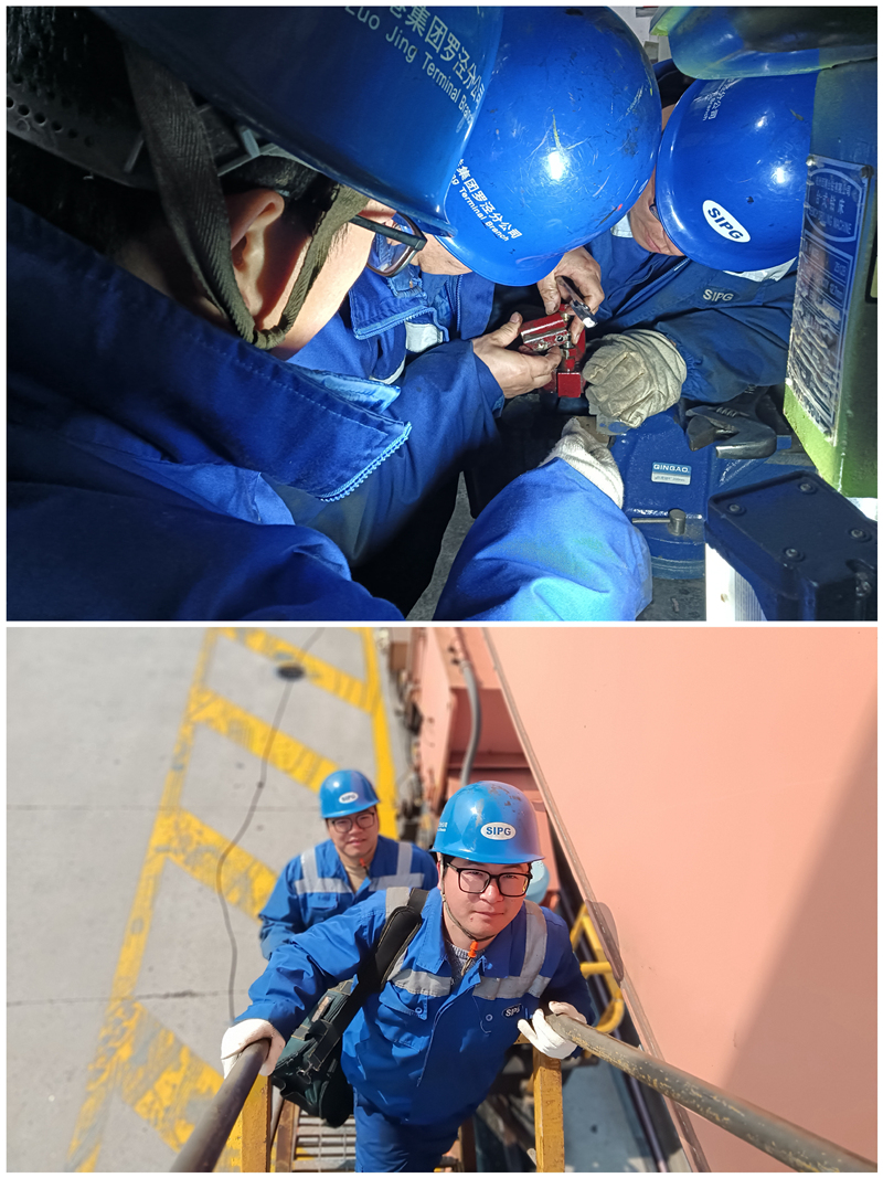 当试车正常的喜讯伴着4014#门机平稳有力的运转轰鸣声传来,连续作战的突击队员们终于露出舒心的笑容。他们凭借过硬专业技能、强烈责任担当与高效默契配合,圆满完成此次紧急抢修任务,用实际行动践行了“保生产、抢时效、守安全”的铮铮誓言,诠释了新时代港口产业工人的责任与担当。