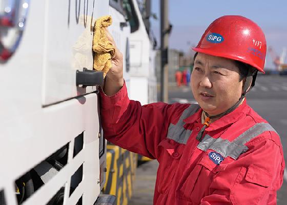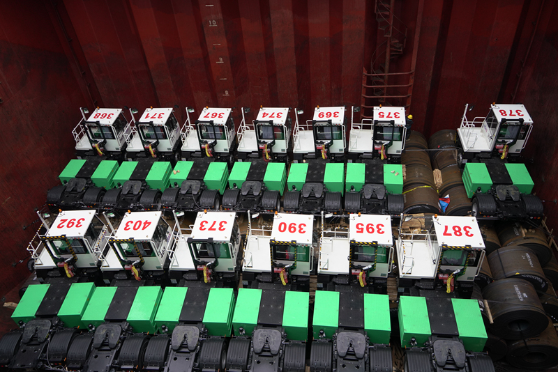 50余台新能源牵引车“集结”罗泾港,创公司单船出运量之最